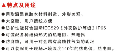 ●可以裝配用于現場環境溫度140℃的熱電阻、熱電偶。