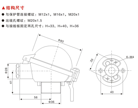 與接線板固定兩孔距尺寸: H =33,H=40,H=36