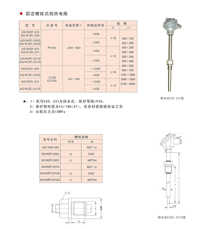 固定螺紋式裝配熱電阻