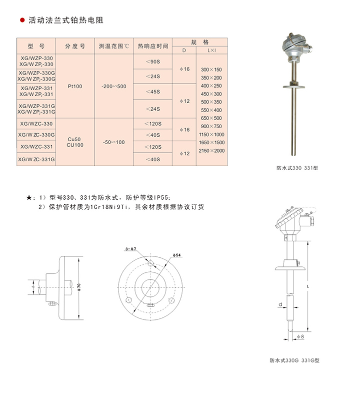 2)保護管材質為1Cr18Ni9Ti,其余材質根據協議訂貨。