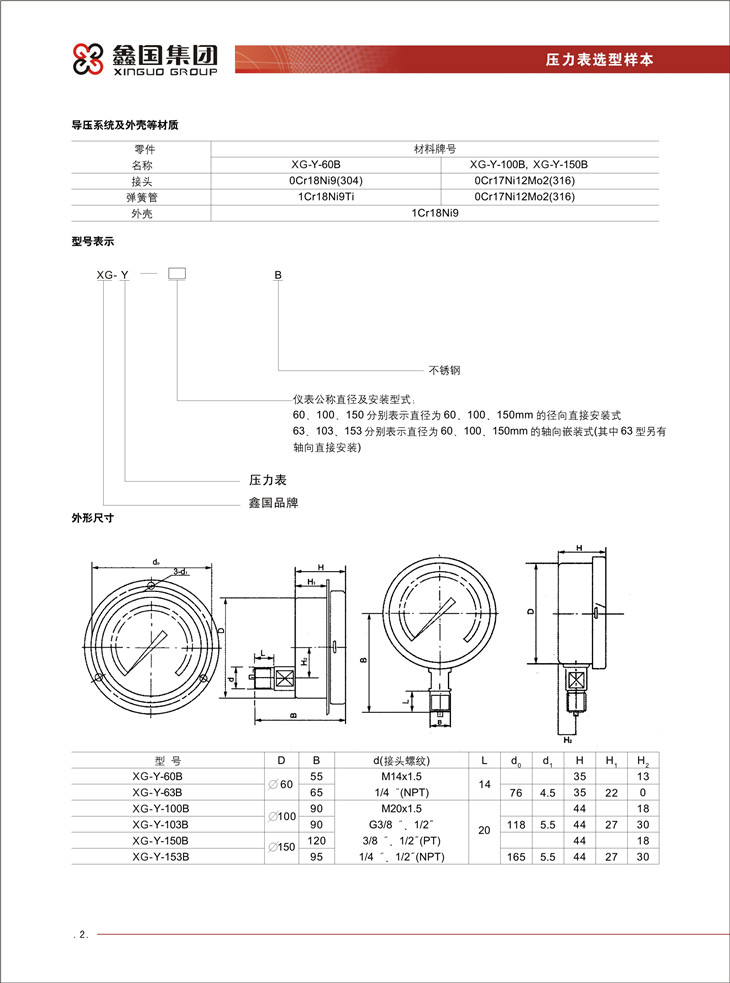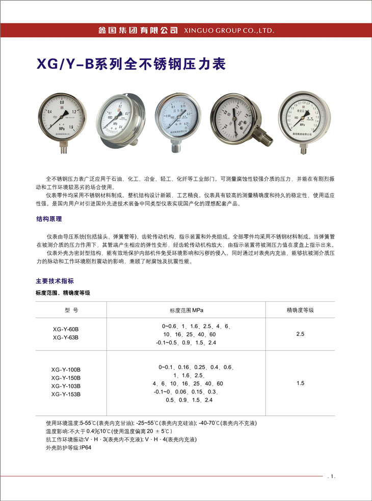 XG / Y- B 系列全不銹鋼壓力表: