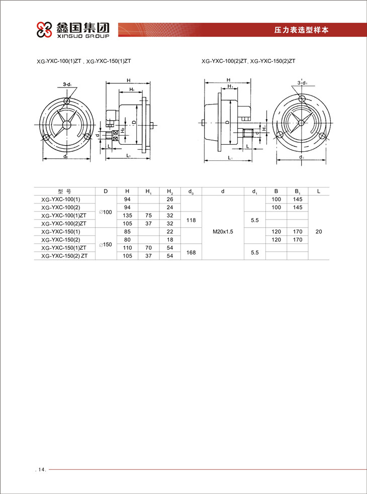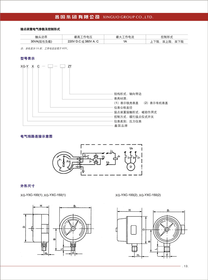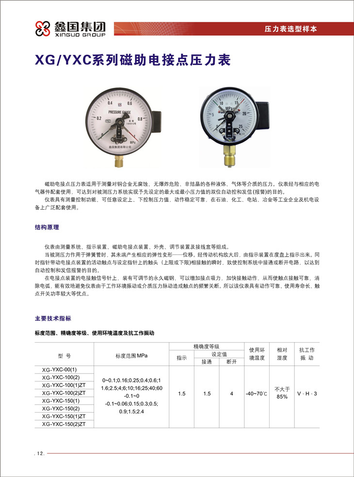 XG-YXC系列磁助電接點(diǎn)壓力表