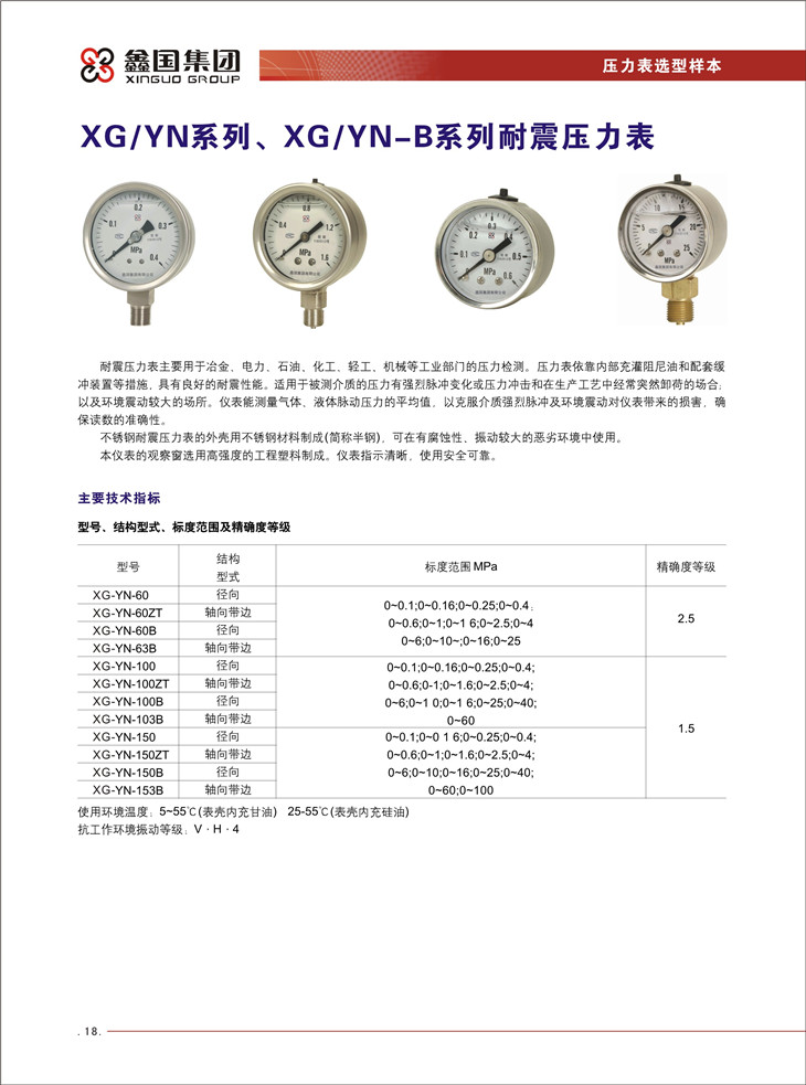 XG/YN系列、XG/YN-B系列耐震壓力表