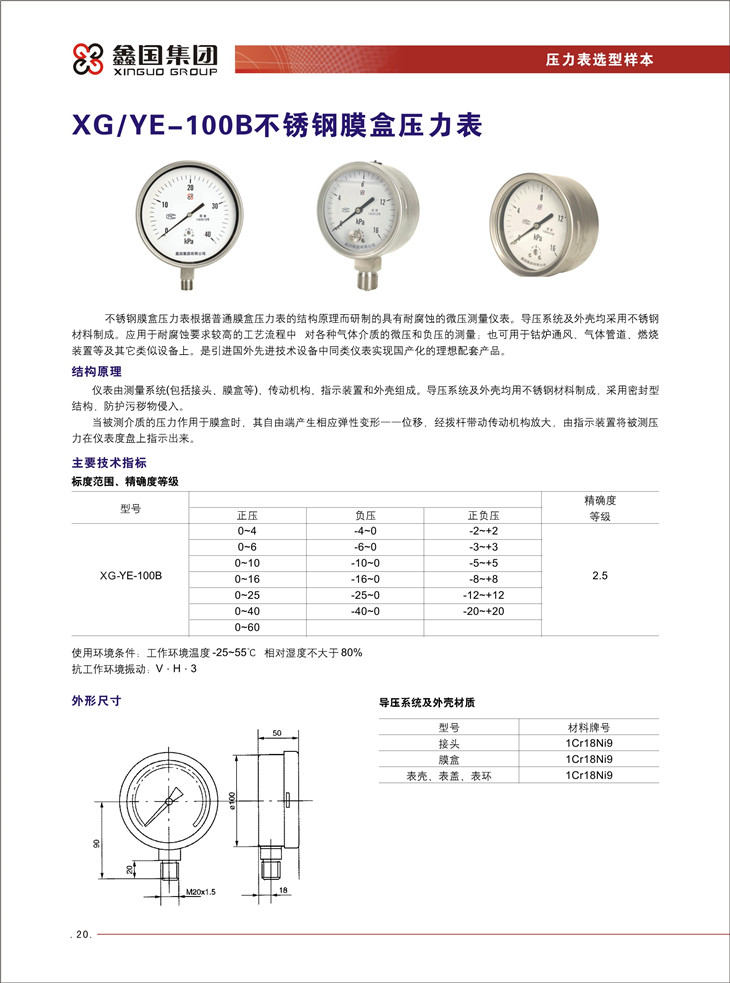 XG/YE-100B不銹鋼膜盒壓力表: