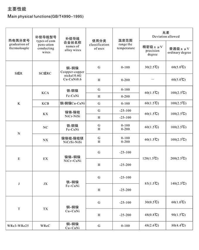 補(bǔ)償導(dǎo)線合金性能: