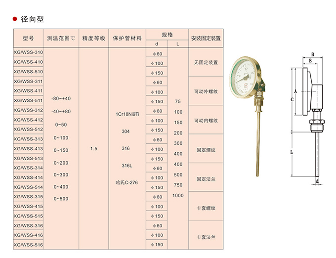 徑向型雙金屬溫度計(jì)